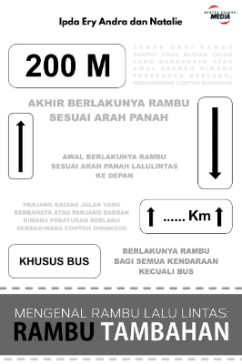 Rambu lalu lintas pastinya sering kita jumpai berada di pinggir-pinggir jalan. Rambu lalu lintas itu merupakan salah satu perlengkapan Jalan. Baik kita sebagai pemakai jalan apakah kita sebagai pengendara kendaraan baik sepeda, motor,mobil atau hanya pejalan kaki harusnya tahu apa arti dari rambu rambu lalu lintas yang kita jumpai dan sudah seharusnya mematuhi setiap rambu lalu lintas itu untuk keamanan bersama.. Namun tidak semua kita mengetahui lambang dan arti dari rambu rambu tersebut. Rambu-rambu lalu lintas yang dibuat tersebut mempunyai arti dan maksud yang penting untuk dipahami semua orang baik pejalan kaki atau pun pengendara kendaraan bermotor. Oleh sebab itu dalam buku ini kita ingin mengenalkan rambu laluintas apa saja yang berupa Tambahan. Tujuannya adalah kita bisa tertib dalam berlalu lintas.